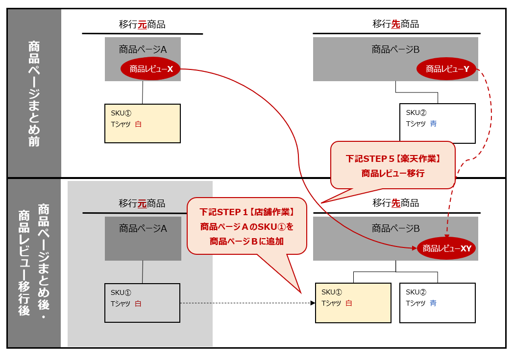 ▼商品レビュー移行のイメージ(ユーザからの見え方)