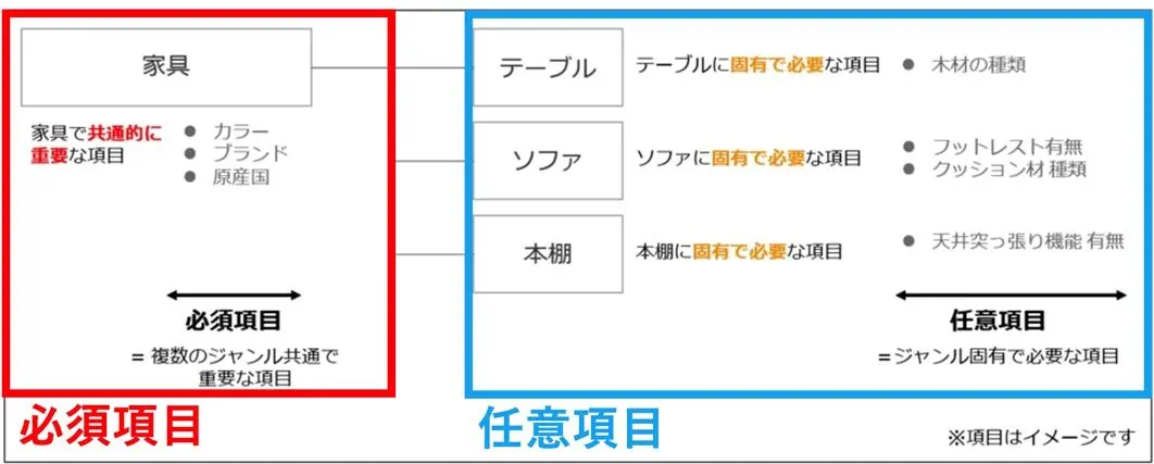 しかしながら、前述した「商品属性」の入力には上記の画像のように必須項目があるため、各商品に対して情報を入力する必要があります。