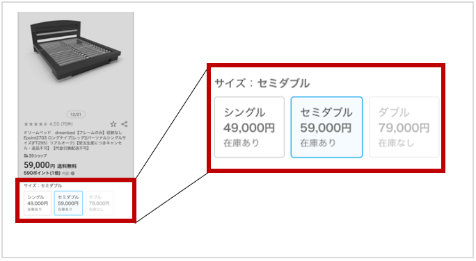 このリニューアルにより、価格の違う商品を比較する際にわざわざ別ページに移動する手間が省けるため、ショップの離脱率を防ぐ効果が期待できます。