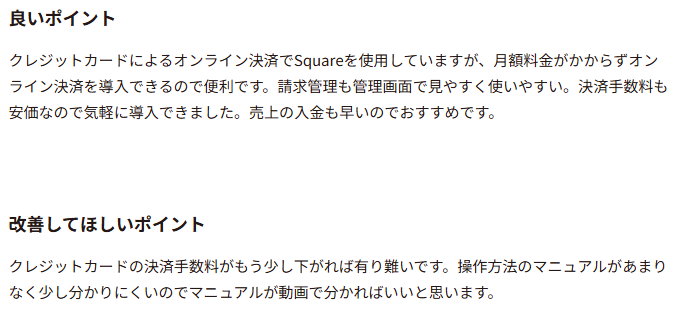 ここで、実際に寄せられたSquareの口コミを紹介します。