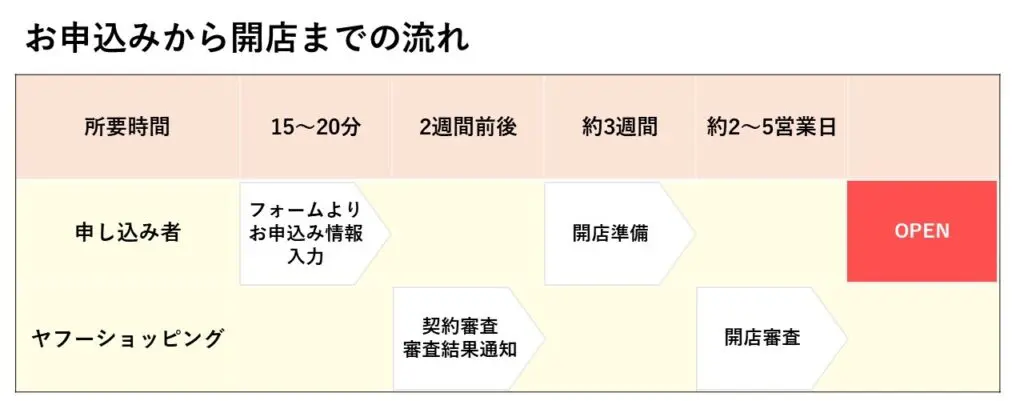 取り扱い商材によって異なりますが、開店審査には約2〜5営業日かかります。