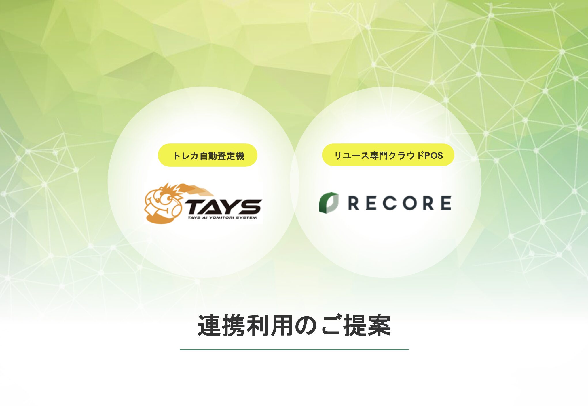 トレカの自動査定機である「Tays」と「RECORE」が連携しました。それぞれのサービスの概要や料金、機能などをご紹介しております。