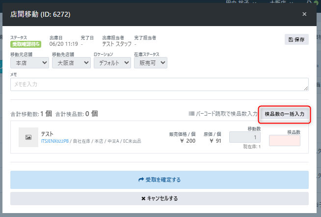 今回のリリースにより、店間移動在庫の検品数を一括で入力できる機能を追加いたしました。
