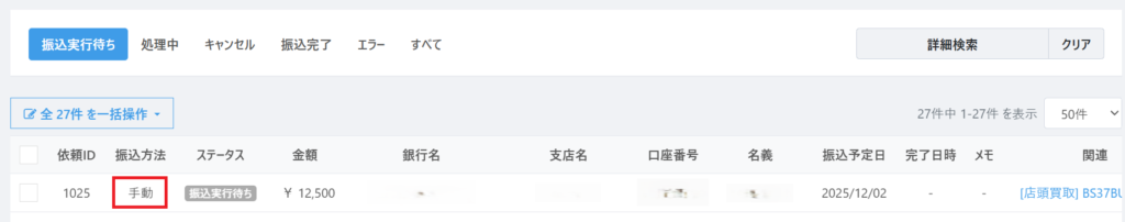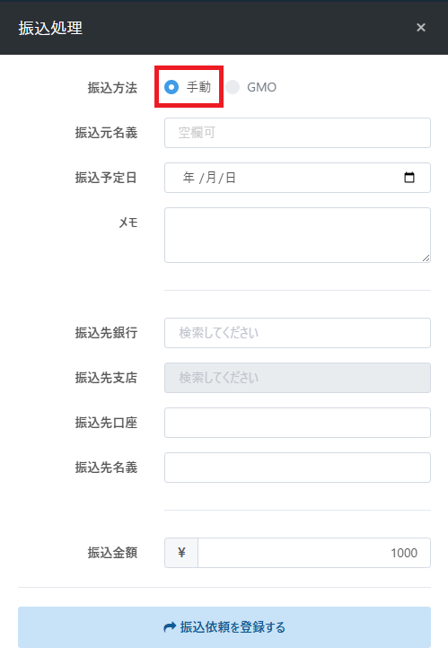 銀行振込に手動振込機能を追加