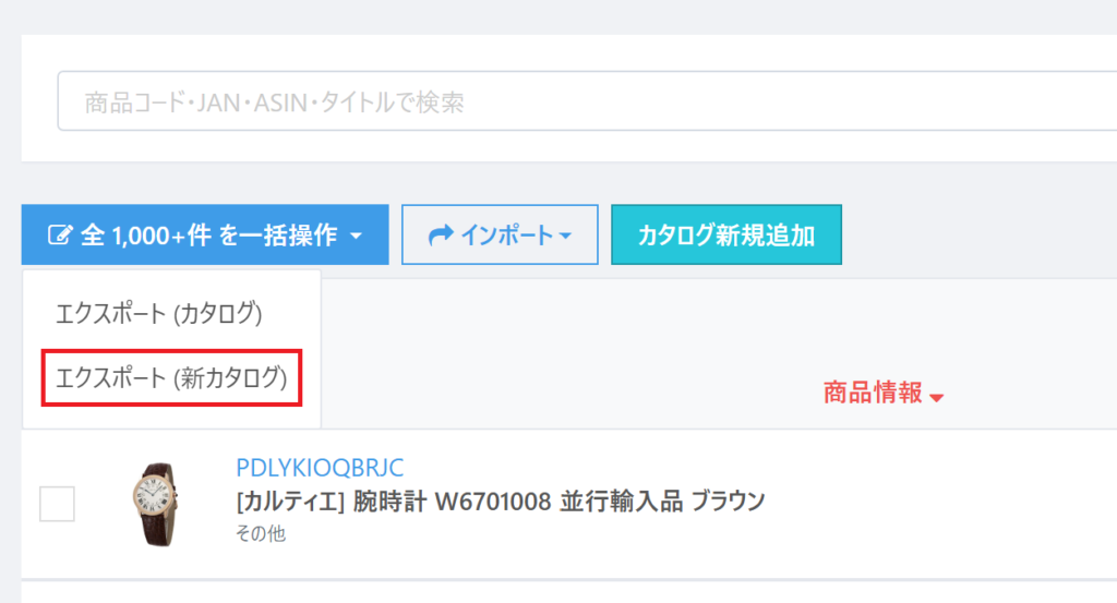 ▼参考:カタログリスト画面の場合「エクスポート(新カタログ)」
