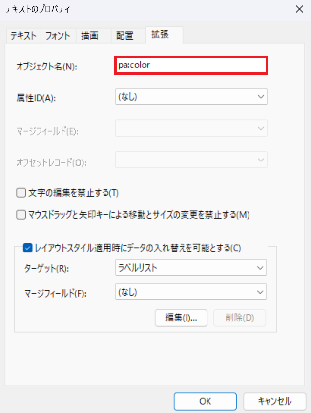 ラベルファイル編集ソフト「P-Touch-Editor」より編集時のオブジェクト名には、以下のように入力します。