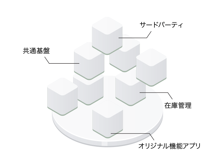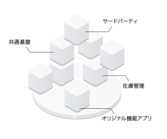 必要なモジュールを選択してカスタマイズしたアプリや他社SaaSと組み合わせることで、最適なシステム環境を構築可能です。
